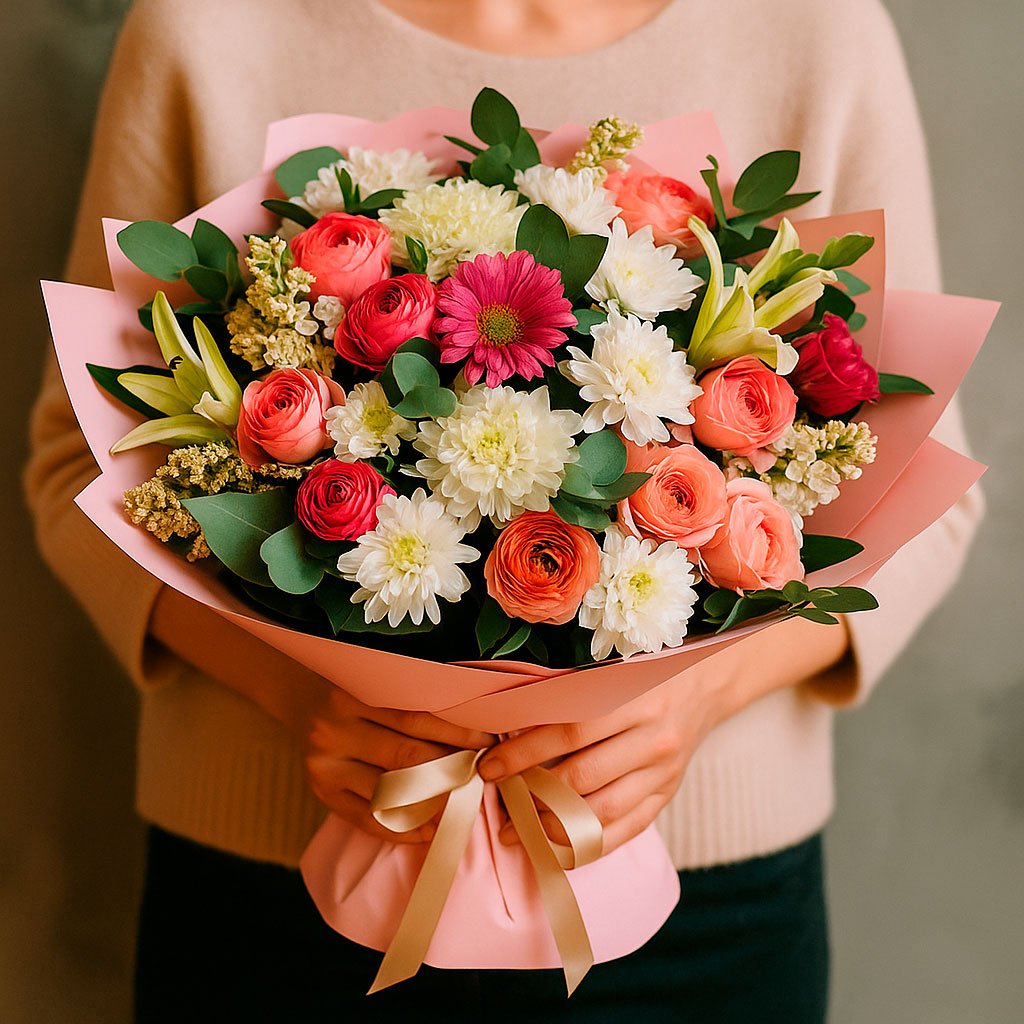 Мы используем только свежие цветы, которые поступают в магазин напрямую с плантаций и оранжерей. Каждый букет собирается вручную опытными флористами.