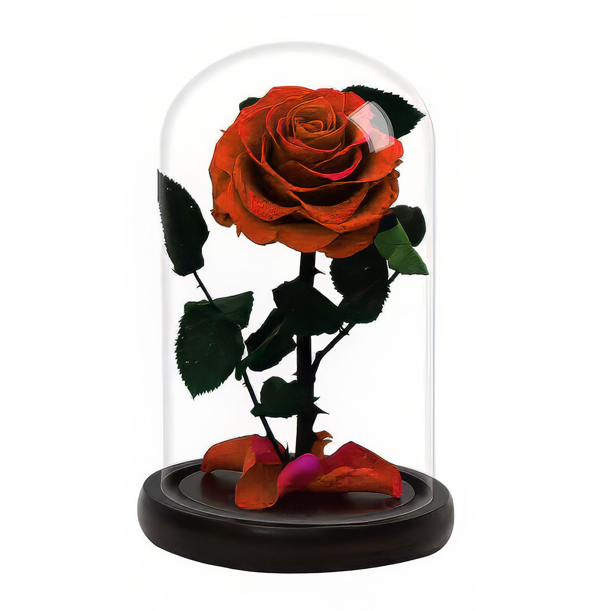 Стабилизированная вечная роза в колбе морковная.